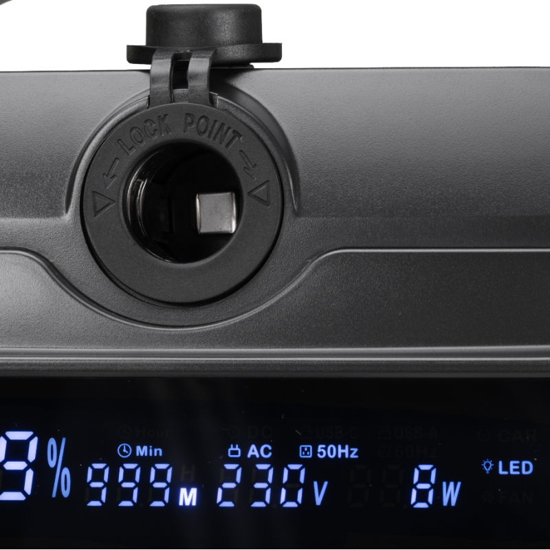 Denne power station kan oplade op til fire enheder på en gang via USB. Den er udstyret med to USB-C-porte og to USB-A-hurtigopladningsporte, der understøtter Qualcomm Quick Charge 3.0. Du kan også oplade op til fire 12V-enheder med et samlet strømforbrug på 10A via bilcigarettænderstikket og de tre DC 2,1/5,5mm stik. Power stationen leveres med to 5,5/2,1mm koaksiale stik til cigarettænderadaptere, som kan bruges til at forbinde enheder såsom kølebokse, vandpumper, minikompressorer og luftpumper direkte eller parallelt. Den er også udstyret med to 230V stik med og 600W samlet kontinuerlig udgang, som er ideel til tilslutning af laptop/tablet/smartphone opladere, eller andre elektriske enheder i denne effektklasse.