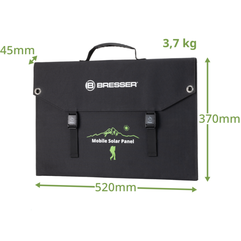 Solcellepanelet fra Bresser er udviklet i et moderne og fladt design med robuste, støv- og vandafvisende egenskaber, så du nemt kan folde det sammen som en lille pakke og opbevare det i din bagage. Det er super nemt og bekvemt at have med på tur. Solcellepanelet er fremstillet i slidstærkt Cordura-stof, som er virkelig rivefast og fleksibelt, som beskytter solcellepanelet mod skader og øger stabiliteten under brug. Solcellepanelerne kan modstå de fleste vind og vejrforhold, du er derfor sikret en trofast ledsager til dine næste mange outdoor aktiviteter.
