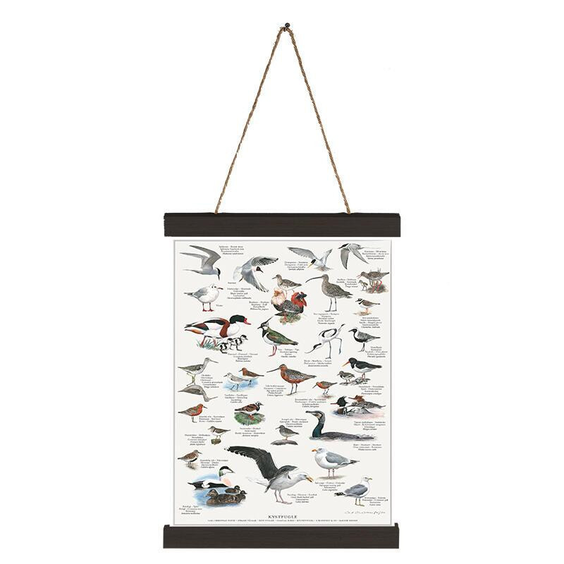 De to lister klemmes sammen om produktets top og bund og snoren føres igennem hullet. Bind en knude på hver side af toplisten. Slå et søm i væggen og kom snoren om sømmet. Nu kan du dekorere væggen med din ynglings plakat.
