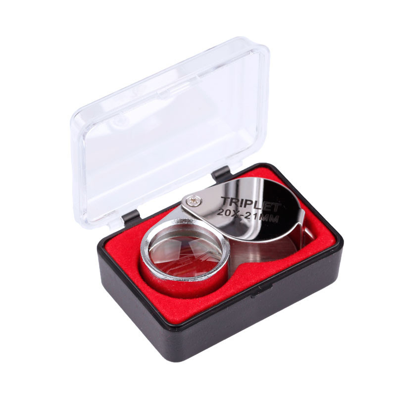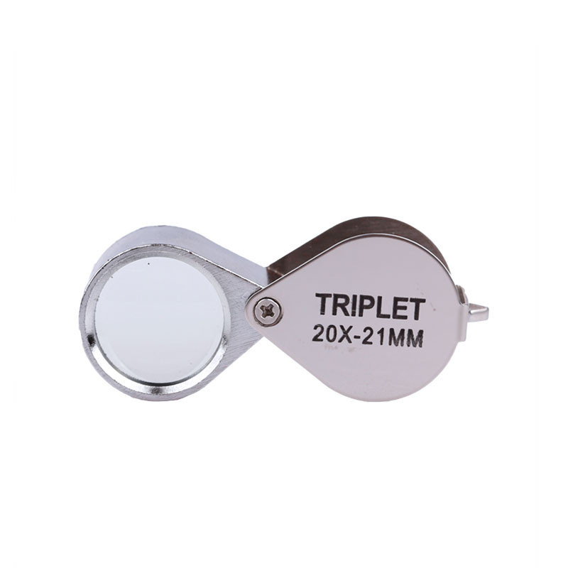 Botaniklup i metal med en forstørrelse på 20x. Botanikluppen er velegnet til at se rav, smykker, sten, blomster, printplader m.m.