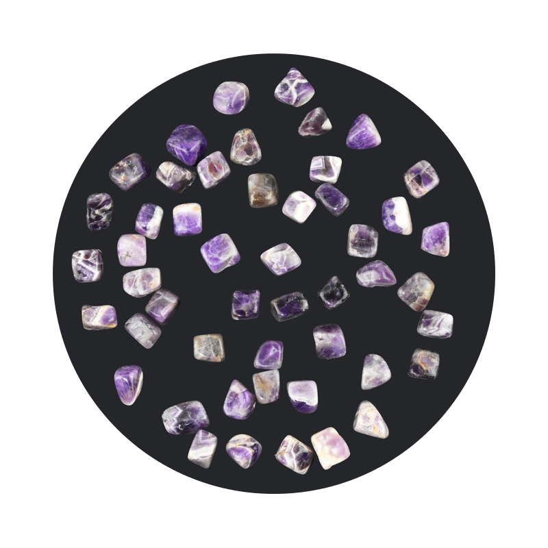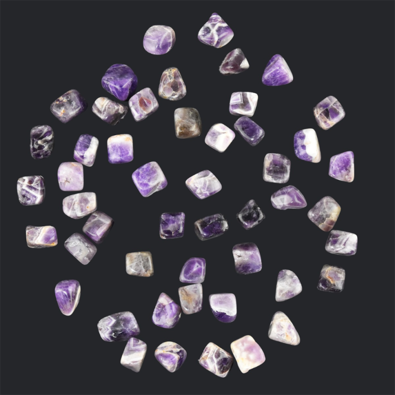 Bånd ametyst lommesten med en størrelse på 2-3 cm. Bånd ametyst siges at være en spirituel sten der skaber kontakt med den åndelige verden. Stenen har en beroligende og blid energi, og besidder de samme egenskaber som den mere almindelige ametyst. Brug bånd ametysten til healing, meditation eller som lommesten - der siges at virke godt som aflastning mod stress ved tæt kontakt med kroppen.