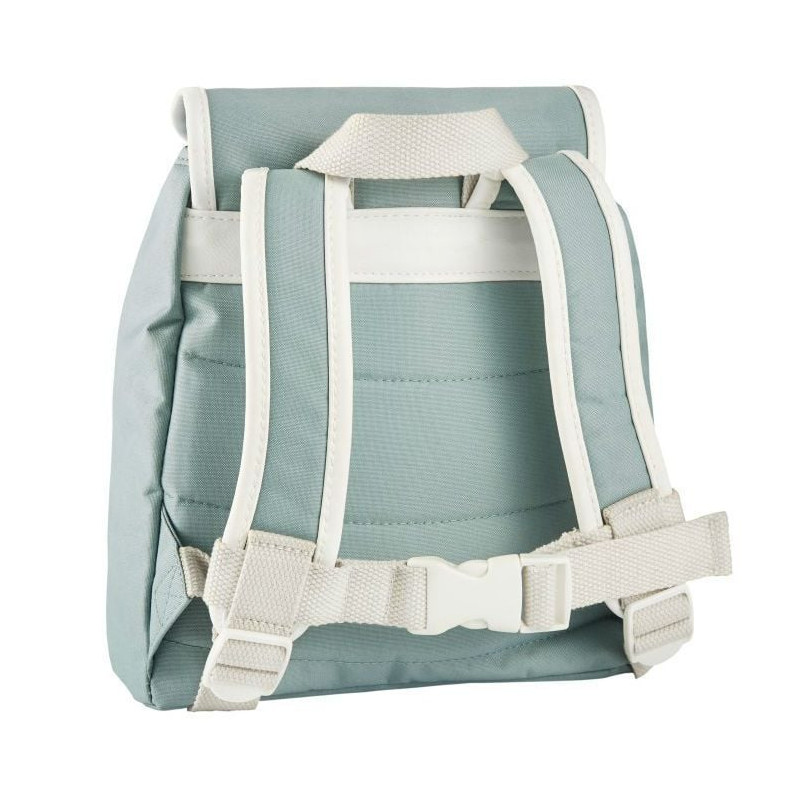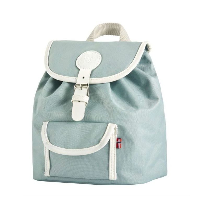 Charmerende lyseblå Blafre taske med retrodesign. Perfekt til børnehave og udflugter. Let, slidstærk og komfortabel med justerbare stropper og kliklås. Et frisk og funktionelt valg til hverdagen.