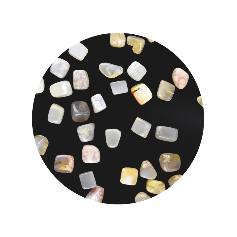 Agat er en meget kraftig sten, som især arbejder med sorg og smerte. Den smukke blomster agat lommesten siges at have en fin feminin kraft. Dens små blomster minder os om, at vi også er i en proces, alt er cyklisk og en proces. Blomster agaten husker dig selv på at du kan nå dit højeste potentiale, hvis blot du tager et skridt af gangen og tilsidesætter frygt og tvivl. Dens energi er både moderlig, feminin og med til at forbinde dig til moderjord.
