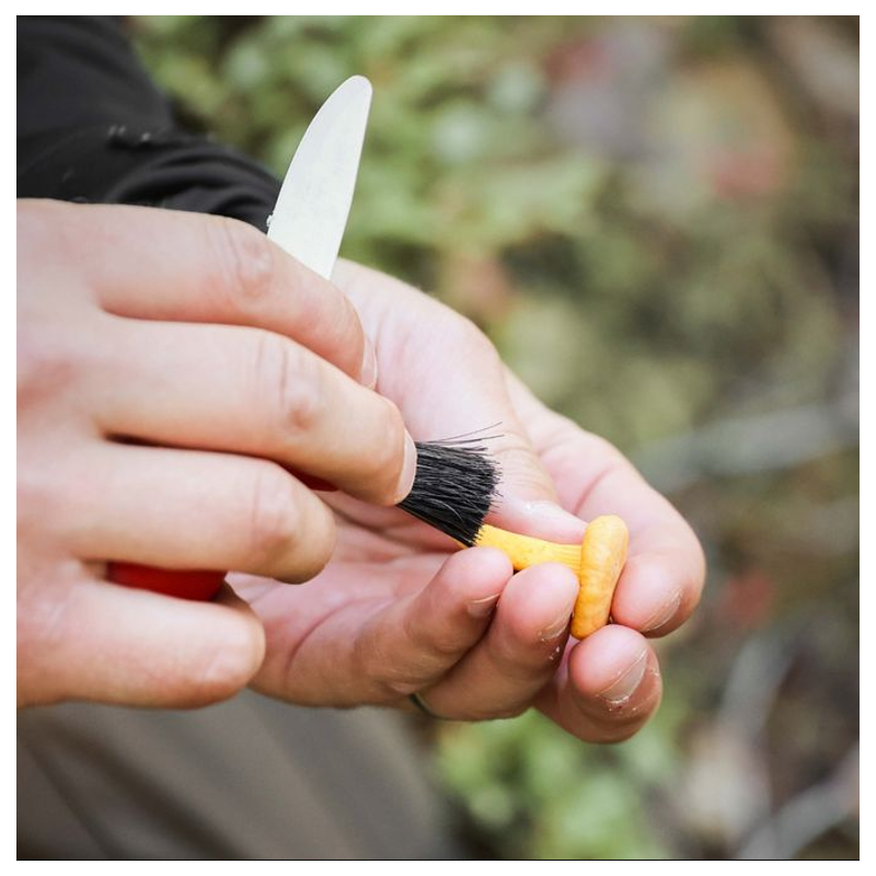 Et præcist værktøj til naturens skatte – funktionelt design med ægte hestehårsbørste og skarpt svensk stål.