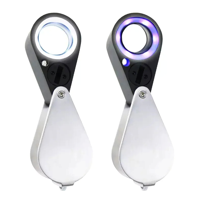 Med denne 20x foldbare lup med LED og UV-lys får du et kompakt og kraftfuldt forstørrelsesværktøj, der er ideelt til undersøgelse af rav, mønter, fossiler, mineraler, planter og fund fra metaldetektor.