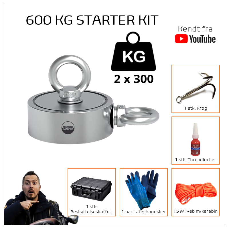 Tag med på magnetfiskeri med det ultimative begyndersæt. Sættet af sammensat af Youtuber Alexander Aagaard. Sættet kommer med en kraftig 600KG fiskemagnet, der er magnetisk på 2 sider, så du kan fange endnu mere! Sættet indeholder alt hvad du har brug for for at komme i gang og henvender sig både til børn og voksne (Fra 8år).