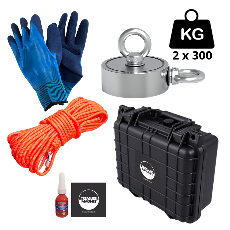 Sættet indeholder en kraftig dobbeltsiddet fiskemagnet en trækkraft på hele 600KG (2x 300KG), hvilket gør den oplagt til begyndere og de lidt større børn.