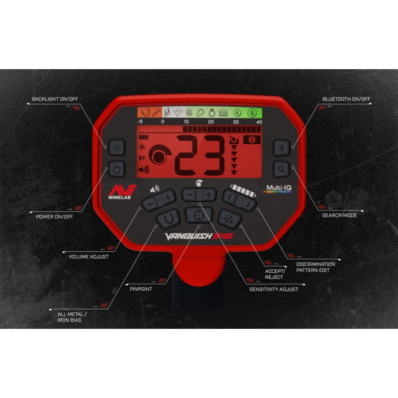 Vanquish er via dens mange frekvenser i stand til at kompensere for mineraliseringen, hvilket sikrer en rolig og stabil søgning med stor dybdegang.