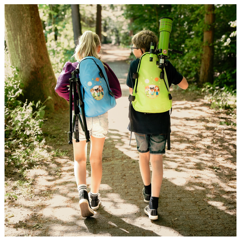 Når observationerne er færdige, kan hele sættet pakkes ned i den stilfulde BRESSER JUNIOR rygsæk, som gør teleskopet let at transportere.