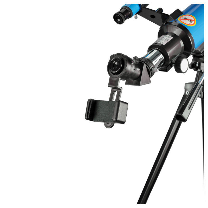 Med den medfølgende smartphone-holder kan du nemt tage billeder gennem teleskopet. Monter blot telefonen på okularet og optag dine observationer – perfekt til at dele oplevelser med familie og venner.