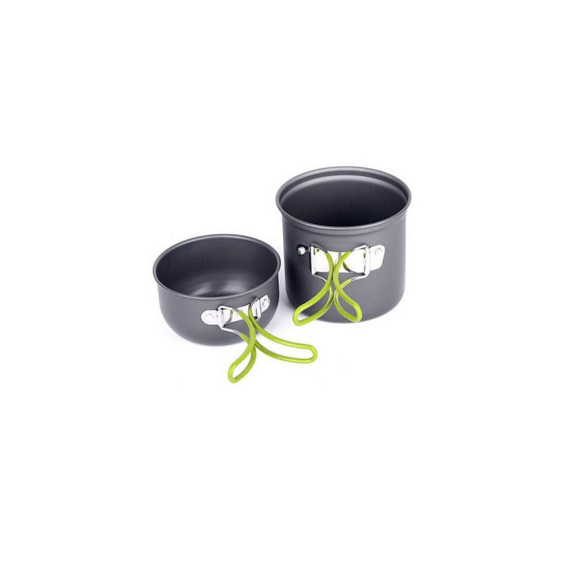 Med dette smarte grydesæt fra GLOBUZ får du et 2-i-1 grydesæt, som er nemt at pakke ned. Grydesættet fra GLOBUZ indeholder to gryder der rummer 0,8 L og 1,5 L. Gryderne er fremstillet i anodiseret aluminium, der gør dem holdbare og nemme at rengøre. Grydesættet holder på varmen, og er udstyret med et håndtag. Ideel at pakke med til turen, og vejer næsten ingenting.