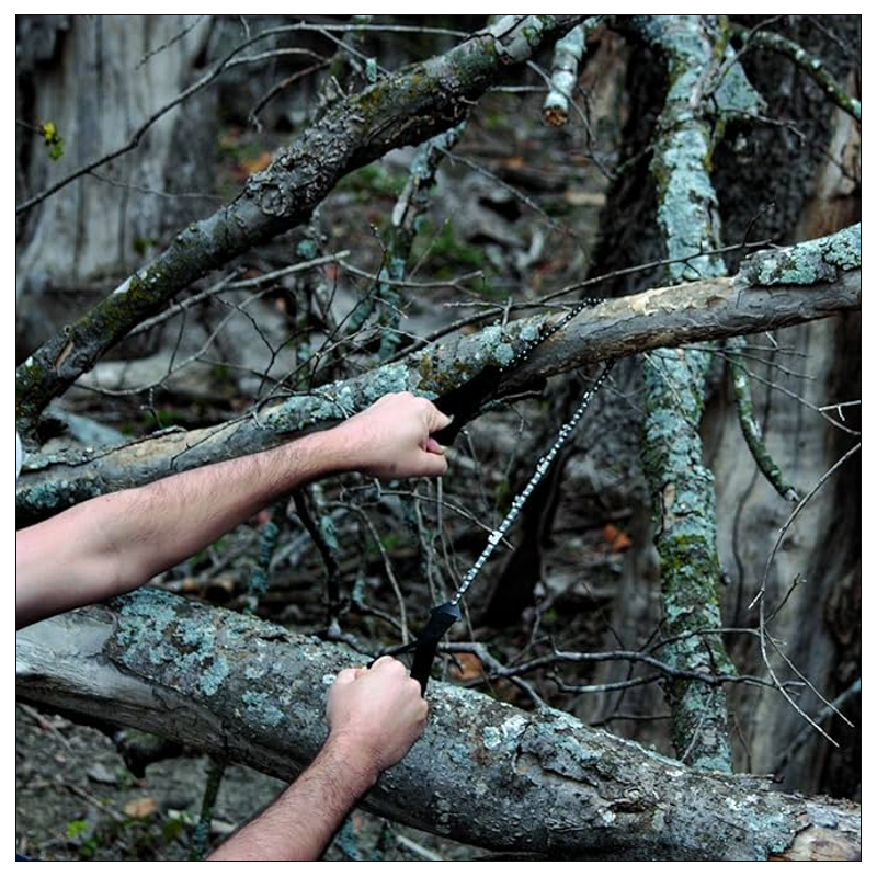 Kædesav 65 cm fra Globuz er ideel til vandrere, campister og jægere, da den er nem at medbringe på turen i den inkluderede pouch. Saven er fremstillet af 3cr13 rustfrit stål hvilket sikre god korrosionsbestandighed og er meget modstandsdygtigt over for brud. Savens 11 tænder, som kan save i begge retninger, kan slibes meget nemt med en kædefil, såfremt det bliver nødvendigt. Saven er udviklet med to stabile og brugervenlige løkker, som kan bruges som håndtag, som giver problemfri savearbejde - også steder hvor det er svært at komme til.