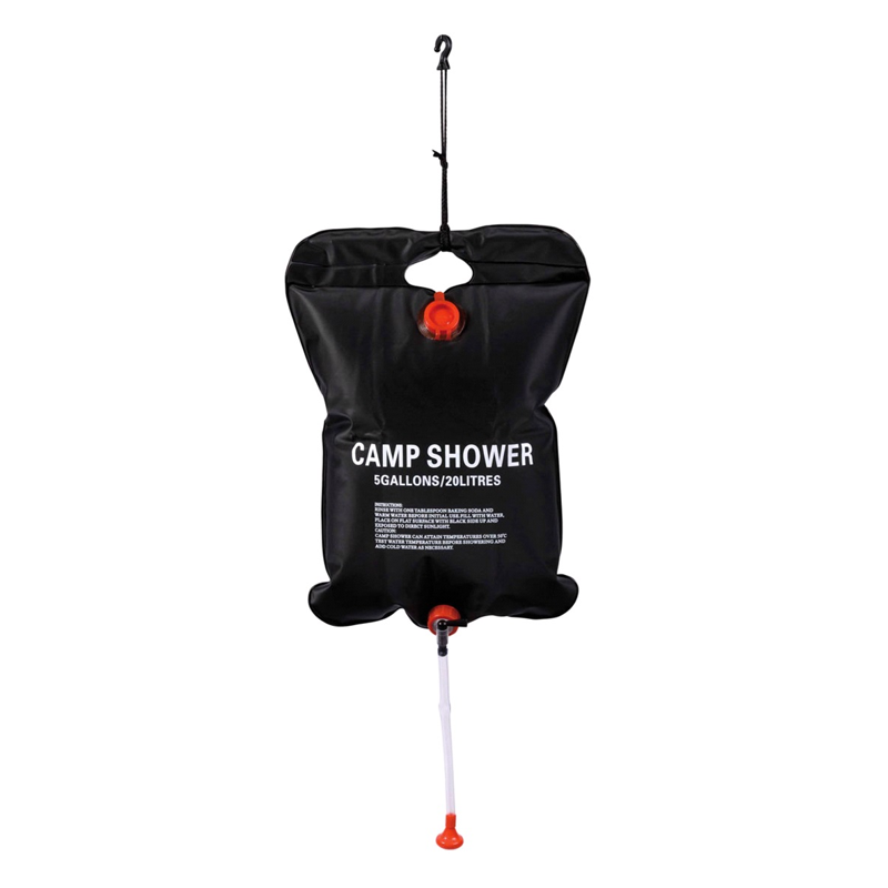 Solarbruseren kommer komplet med slange, brusehoved og krog, klar til ophængning i et træ eller lign. Med sin kapacitet på 20 liter, er den perfekt til campingture og udendørs eventyr.
