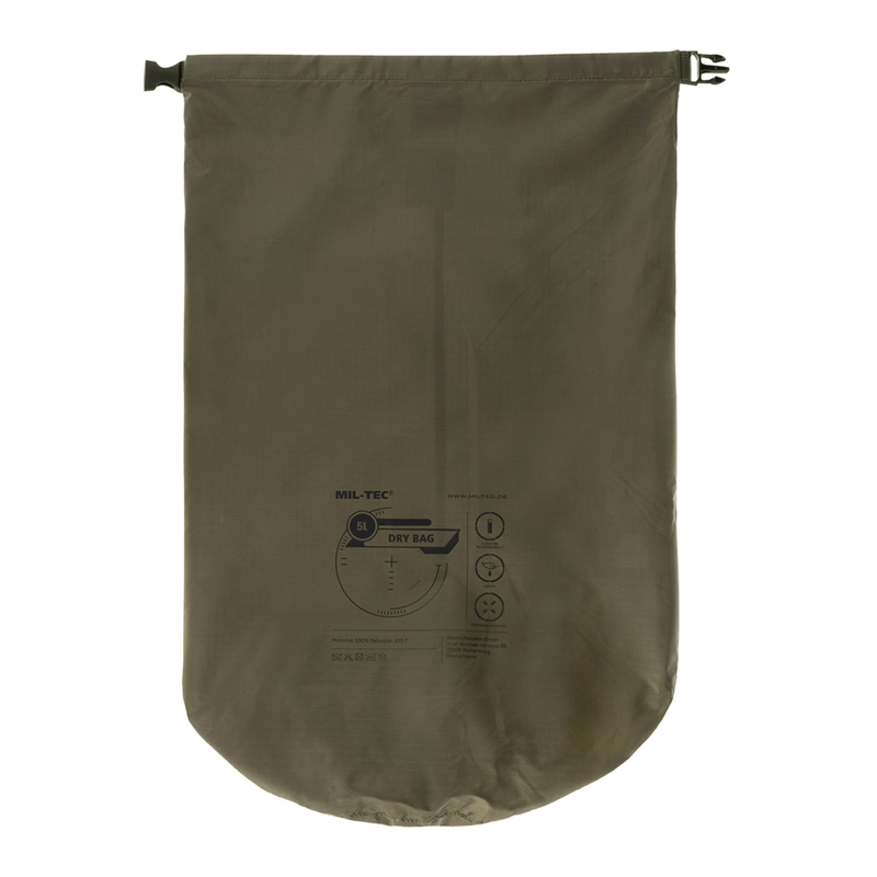 En vandtæt transporttaske med en kapacitet på 5 liter er fremstillet af slidstærkt, trelags 210T polyester belagt med polyurethan, hvilket giver en vandtæthed på 5000 mm/m². Konstruktionen er forstærket med laminerede sømme, hvilket øger modstanden mod fugt. En tætsluttende rullelukning med spænder beskytter effektivt indholdet mod vand. Når spænderne er fastgjort, fungerer de sammen med lukkeskinnen som et bærehåndtag.