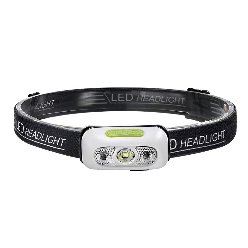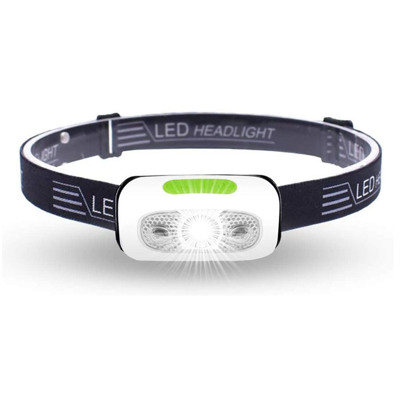 Kraftig lille pandelampe med behagelig pasform, indbygget genopladeligt batteri, der oplades direkte via det medfølgende USB-kabel.