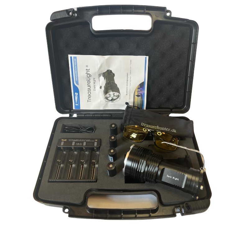 Dark Night 50W en en kraftig ravlygte som henvender sig til både begyndere og øvede ravjægere. Den er designet med 5 kraftige T6 LED pære på hver 10W, hvilket gør den kraftig nok til at lyse rav op på mere end 50m. afstand.