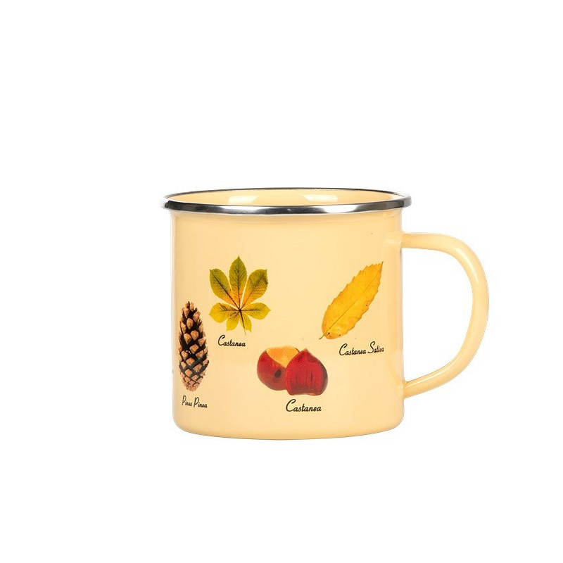 Super flotte emalje krus med træ motiv. Perfekt til et udendørs eventyr! Gode til både kolde og varme drikke.